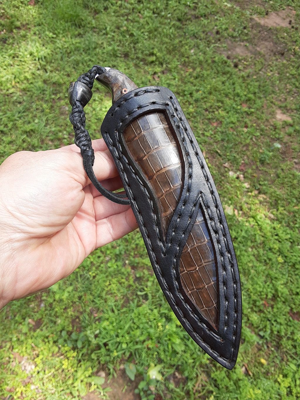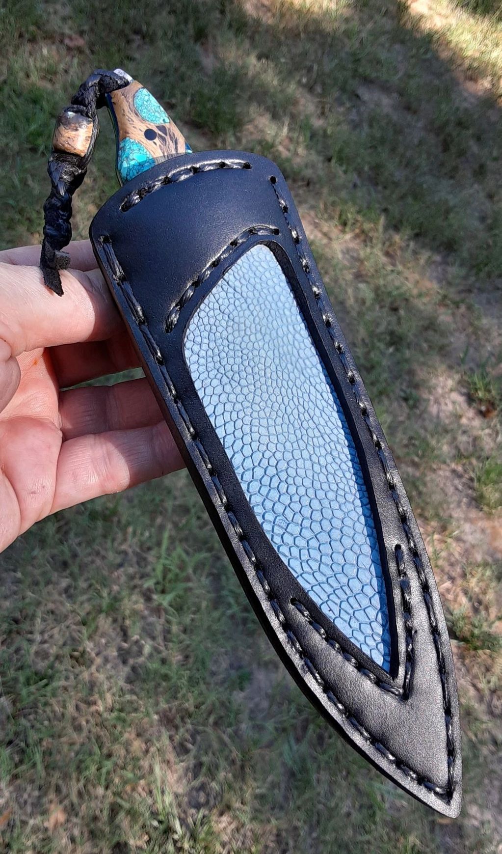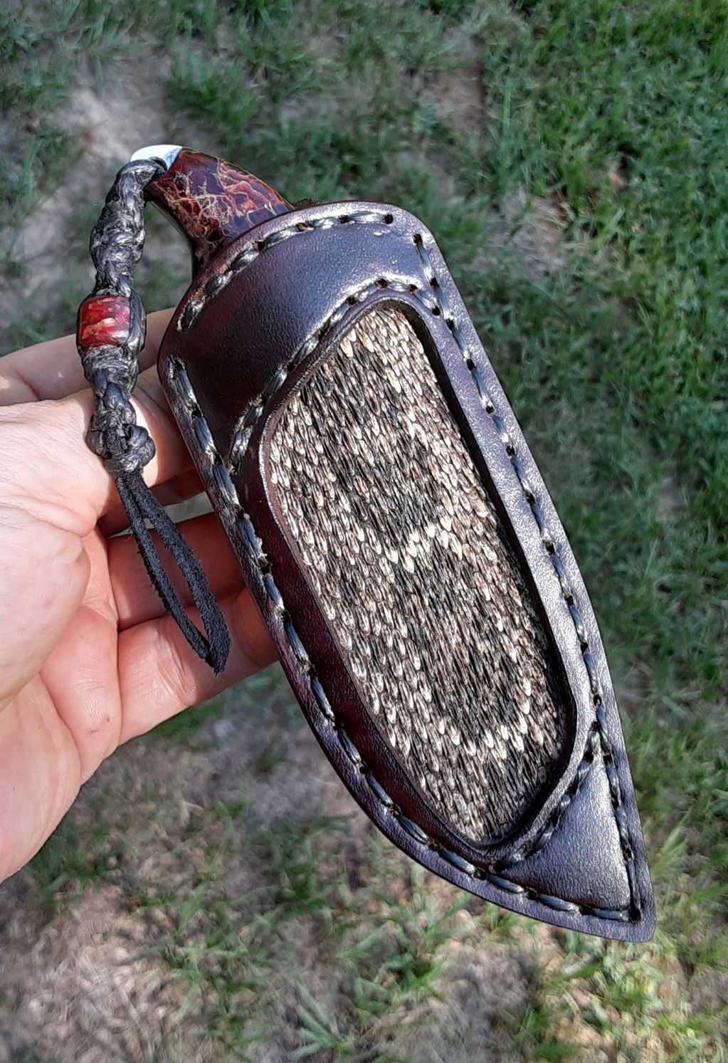 Here's on of Erica's Beautiful Custom Handmade Sheaths!! This one has a Rattlesnake Skin Inlay.